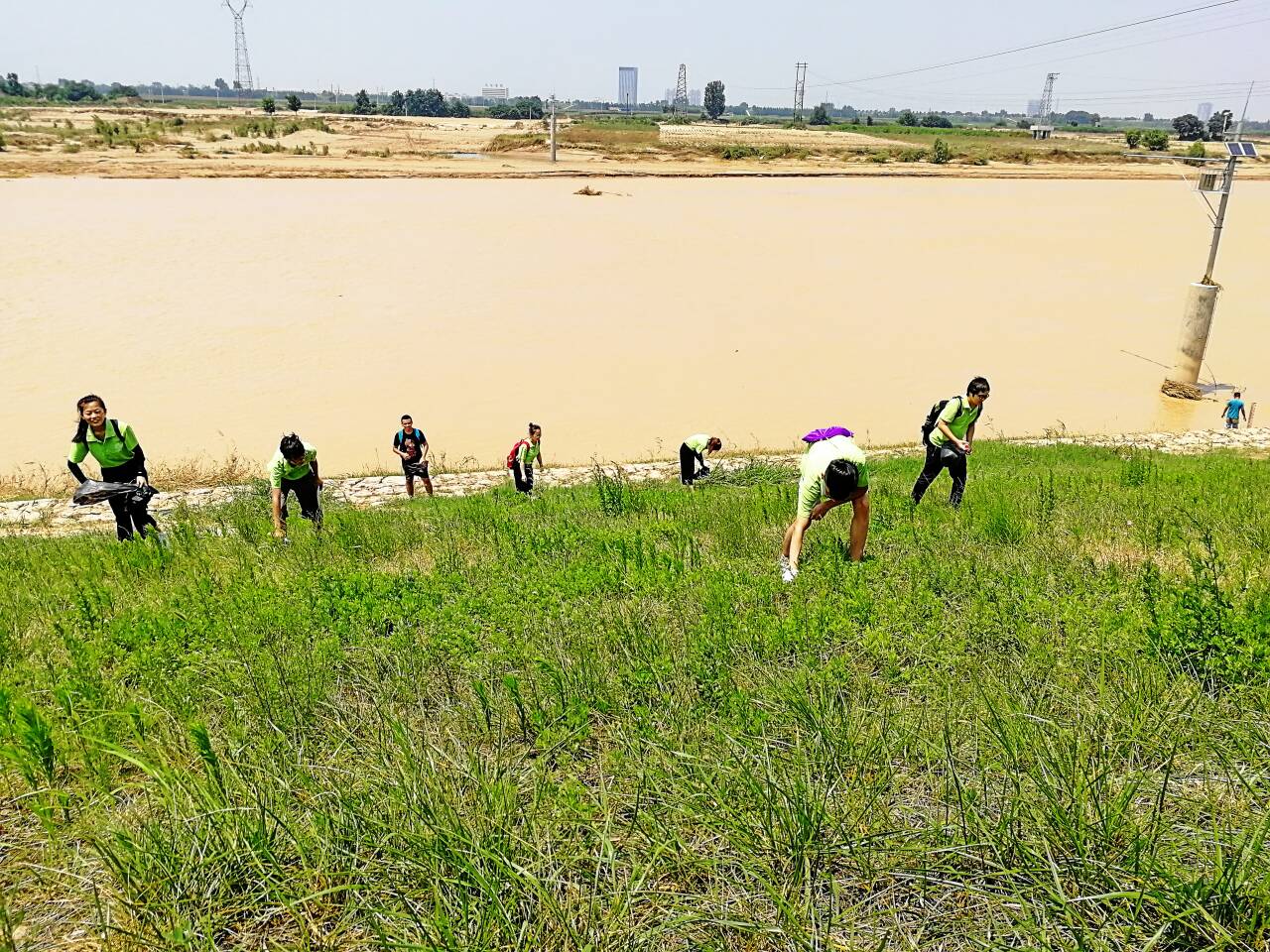 7月25日,Beat365中文官方网站赴西安市"践行环保,美丽中国"实践团进行了第六天的环保实践活动。“实践是检验真理的唯一标准”,今天环保志愿团队来到了西安市灞桥生态湿地公园,进行义务清扫活动。