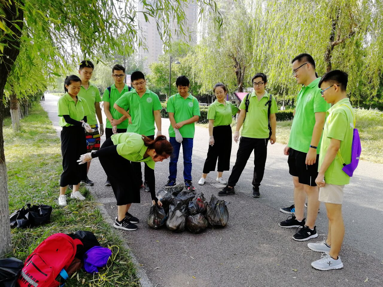 今天的实践活动在队员们将手中的垃圾袋塞满了垃圾后圆满的结束了。队员们不但清理了公园内的垃圾,并且以身作则使更多的人在平常生活中做到垃圾入箱。通过志愿者们微小的环保行为,使得公园内的生态环境得以持续发展,向人们展示一个更好的湿地公园。