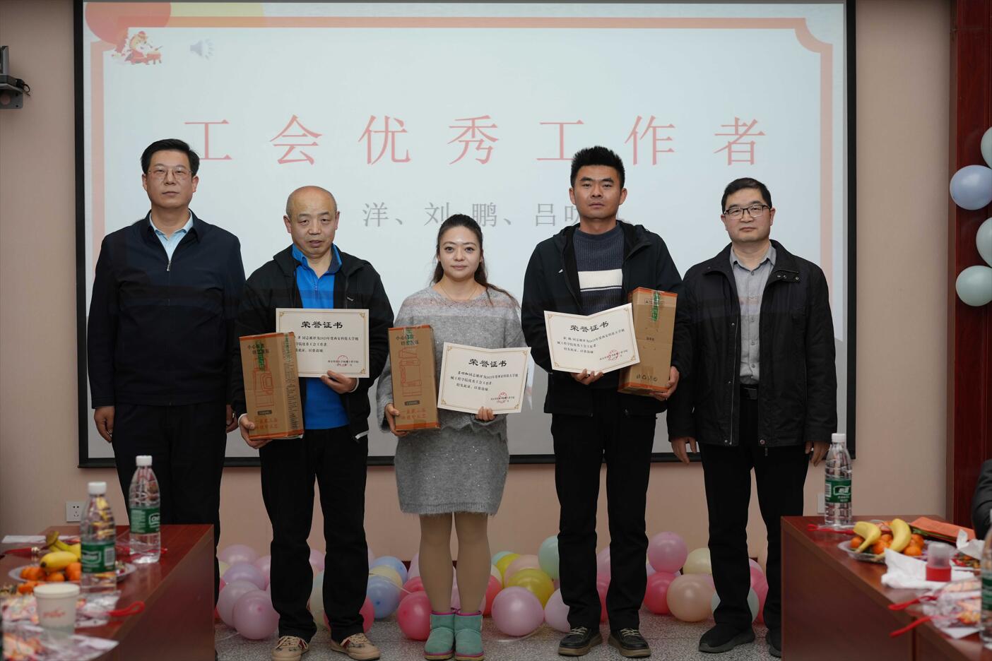 活动第二阶段为表彰环节。学院对2025年度在就业工作中表现突出的机械制造系、机械设计系、车辆工程系授予“就业工作先进集体”荣誉称号,郭小平、曹现刚为获奖集体颁发了奖牌和奖品。同时,对在本科教学、研究生教育、科技竞赛、科研创新、学科建设、工会服务等工作中取得优异成绩的个人进行了表彰。学院班子成员依次为获奖教师颁发荣誉证书,现场气氛热烈,掌声不断。