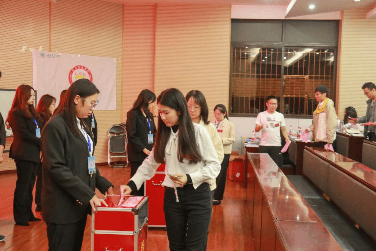 接着全体代表在主会场中展开了第二次全体会议并审议通过了《关于新葡的京集团350vip8888官网2023-2024届学生会工作报告的决议》《关于新葡的京集团350vip8888官网2023-2024届研究生会工作报告的决议》,匿名投票选举了新一届学生会和研究生会主席团成员,并于现场宣布了大会的选举结果。