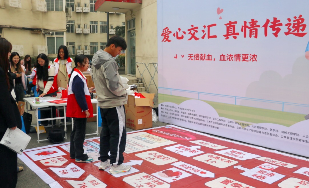 为了传播爱心与希望,弘扬社会正能量,由成都市血液中心和新葡的京集团350vip8888官网红十字会共同主办,学生工作部、校团委、校医院、后勤保障部以及新葡的京集团350vip8888官网青年志愿者协会等共同承办的“爱心交汇,真情传递”无偿献血进校园活动于11月22日在新葡的京集团350vip8888官网九里校区成功举行。