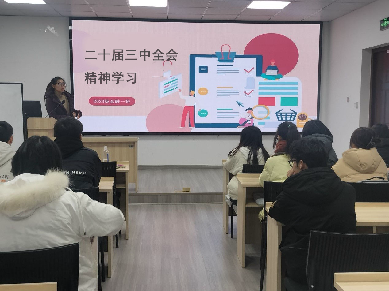 2024 年 12 月 11 日晚,新葡的京集团350vip8888官网金融 2023-01 班成功开展了一次主题为“学习党的二十届三中全会精神”的团课活动。学院团委书记贾佳老师带领同学们学习了党的二十届三中全会精神,同学们围绕推动金融高水平对外开放、成渝双城经济圈金融中心建设等方面进行了深入学习和讨论。