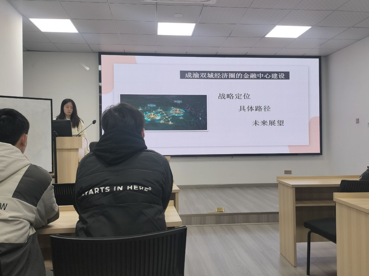 在对成渝双城经济圈金融中心问题的研讨中,同学们从战略定位、具体路径、未来展望三个方面进行了深入的分析。同学们认为,成渝双城经济圈金融中心的构建,需紧紧依托区域独特优势,精准明确其战略定位,全力创新金融产品与服务模式,以此为成渝地区经济的蓬勃发展筑牢坚实根基,提供强劲助力。此外,同学们还踊跃发言,就金融中心建设的具体推进路径以及长远发展前景,积极分享了各自独到的见解与建设性的建议,为这场讨论增添了多元的思维火花与实践智慧。