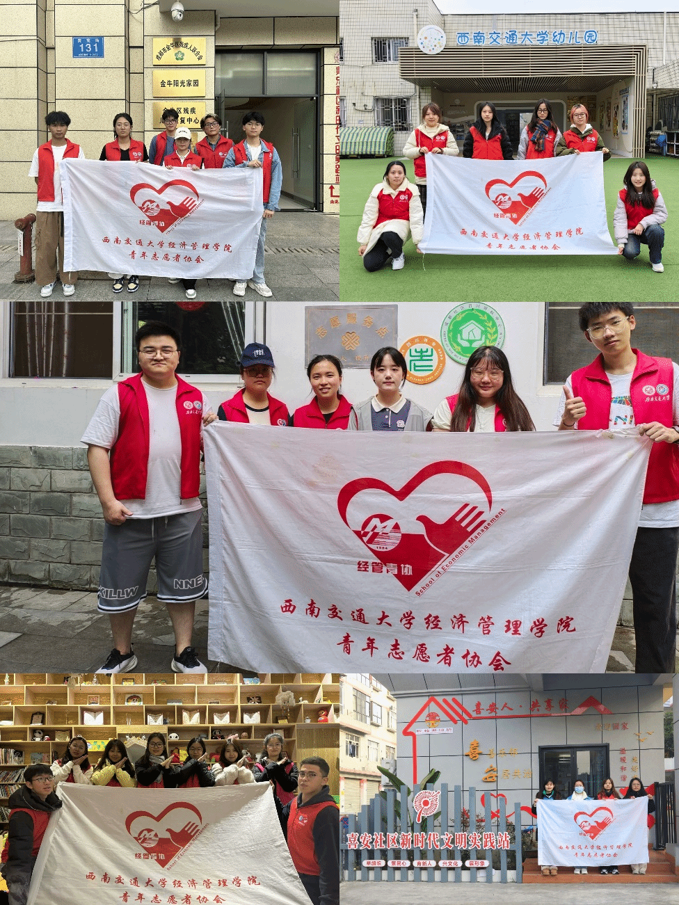 “雨中送温暖,爱心遍校园”爱心雨伞活动解决了师生突遇雨天无伞可用的难题;“衣旧情深,书香为伴”——旧衣旧书回收募捐活动呼吁学生们低碳环保生活;“爱心交汇,真情传递”——无偿献血进校园活动号召师生积极参与献血活动,用爱心拯救生命,将爱心传播四方;“学雷锋,交大青年在行动”——妇女节志愿活动,宣传关爱妇女的理念,引导大家进一步了解女性健康......