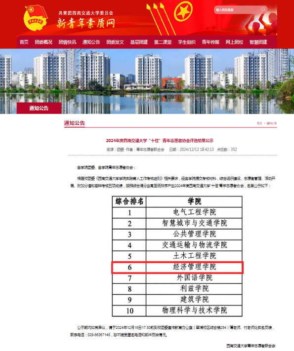 2024年,在校团委、学院党委、团委的正确领导下,新葡的京集团350vip8888官网青年志愿者协会全体成员以团结奋进的精神面貌,务实高效地开展工作,积极探索实践育人新模式,组织和开展了丰富多彩的社会服务与志愿活动,圆满完成了各项任务,有效支持了学校和学院团委的工作,展现出强大的活力。在学校年底进行的2024年共青团实践育人工作考核中,新葡的京官网青年志愿者协会荣获“十佳青协”荣誉,取得了优异的成绩。