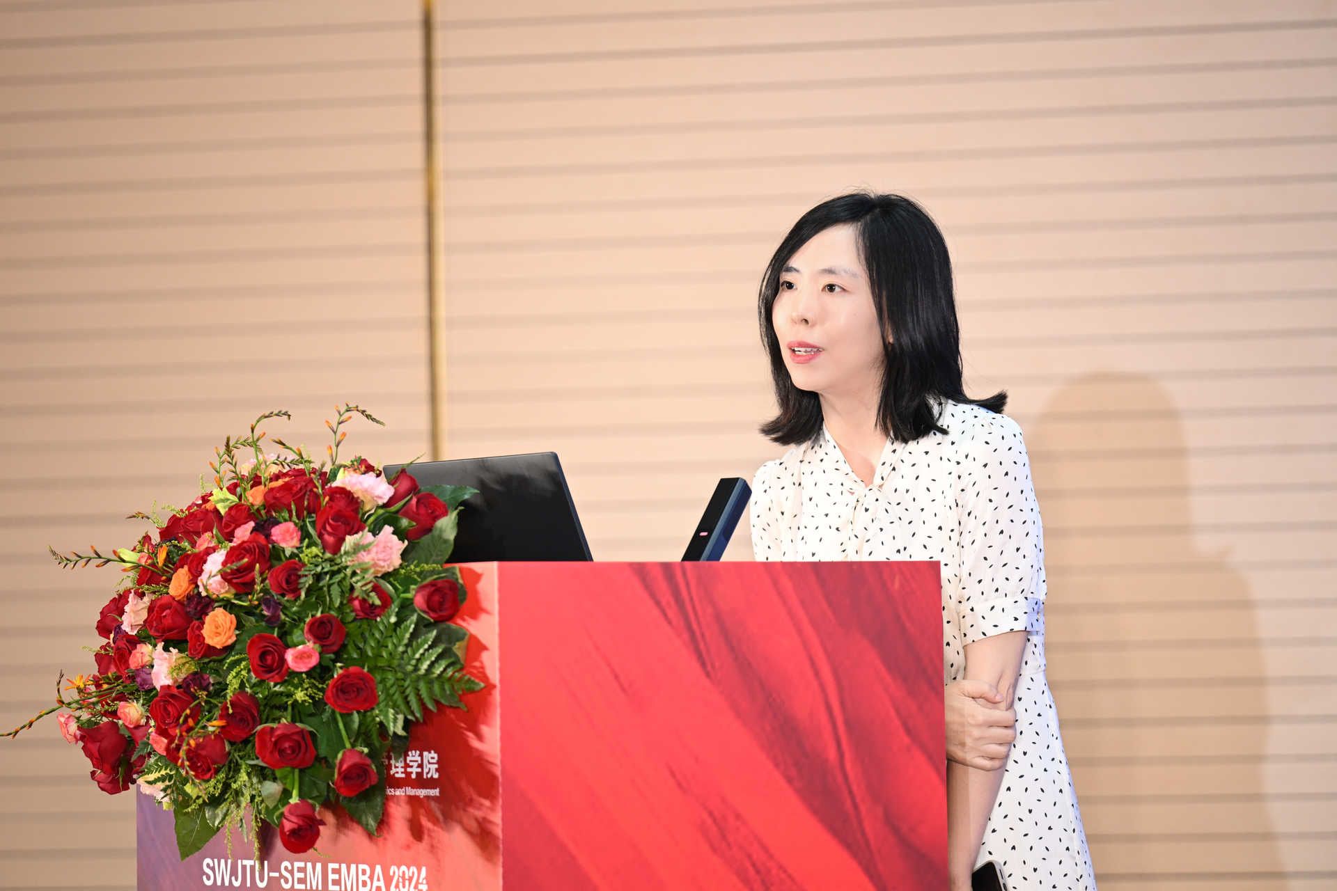 随后,学校党委副书记高平平致辞。他代表学校向2024级EMBA新生们表示了热烈的欢迎和衷心的祝贺。他指出,新葡的京集团350vip8888官网作为一所历史悠久、底蕴深厚的高等学府,一直以来致力于培养具有创新精神和社会责任感的高层次人才。他勉励新生们珍惜来之不易的学习机会,专注于学业,不断提升自我素质,努力做到学有所获、学有所成。他表示,EMBA项目不仅是一个学习知识的平台,更是一个提升个人素养和管理能力的关键阶段,希望同学们能够在学习中不断探索,勇于创新,将课堂所学转化为解决实际问题的能力,并在未来的职业生涯中做出卓越贡献。