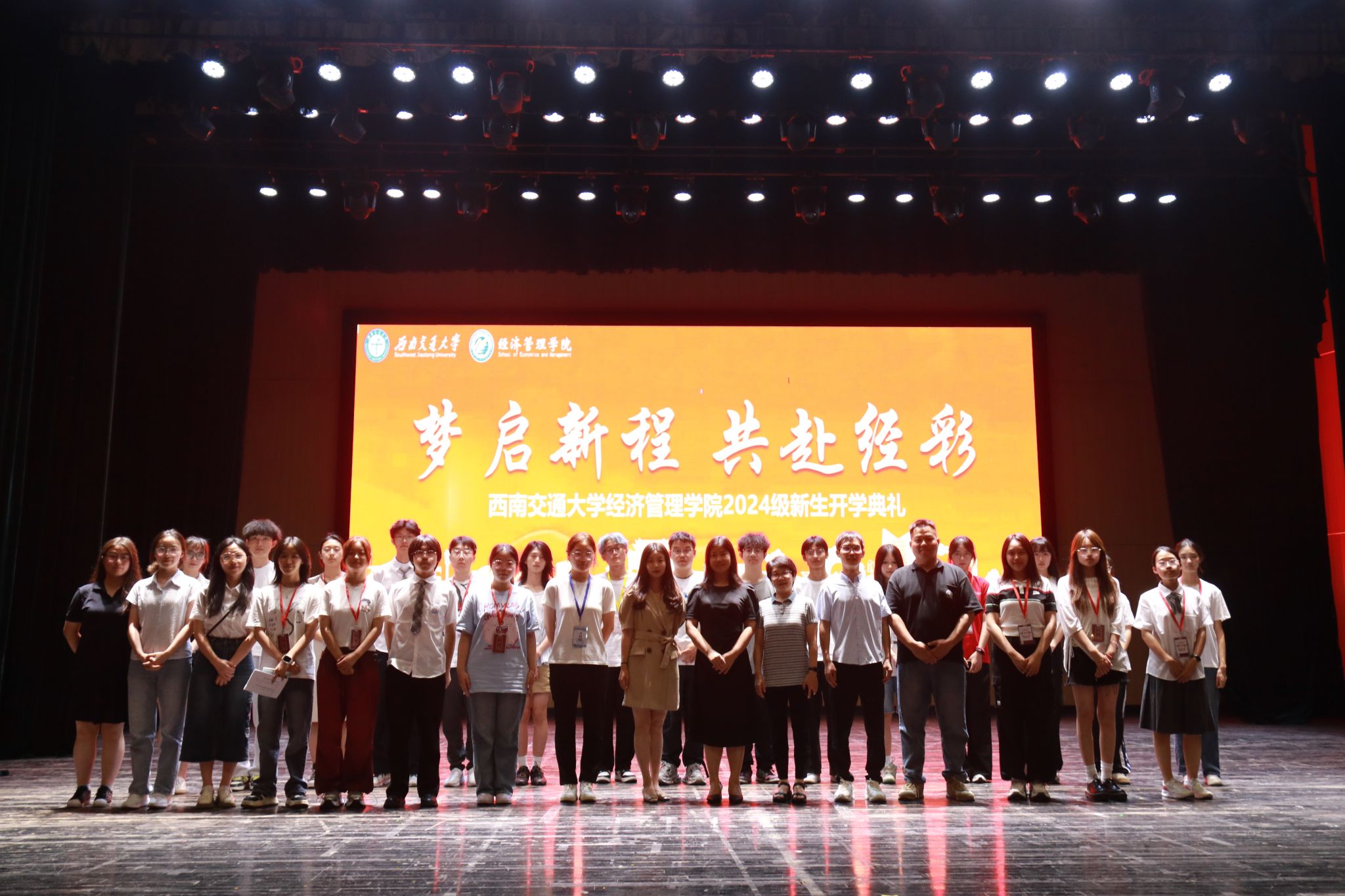 2024年8月31日晚,新葡的京集团350vip8888官网2024级新生开学典礼在学生大会堂隆重举行。出席本次开学典礼的领导和嘉宾有:学院党委书记郭强,院长韩科,学院党委副书记、纪委书记晏理斌,副院长李良、聂佳佳、马锋,以及学院各系、中心的教职工代表,各班班主任,2024级辅导员。活动由学院党委副书记余小英主持。